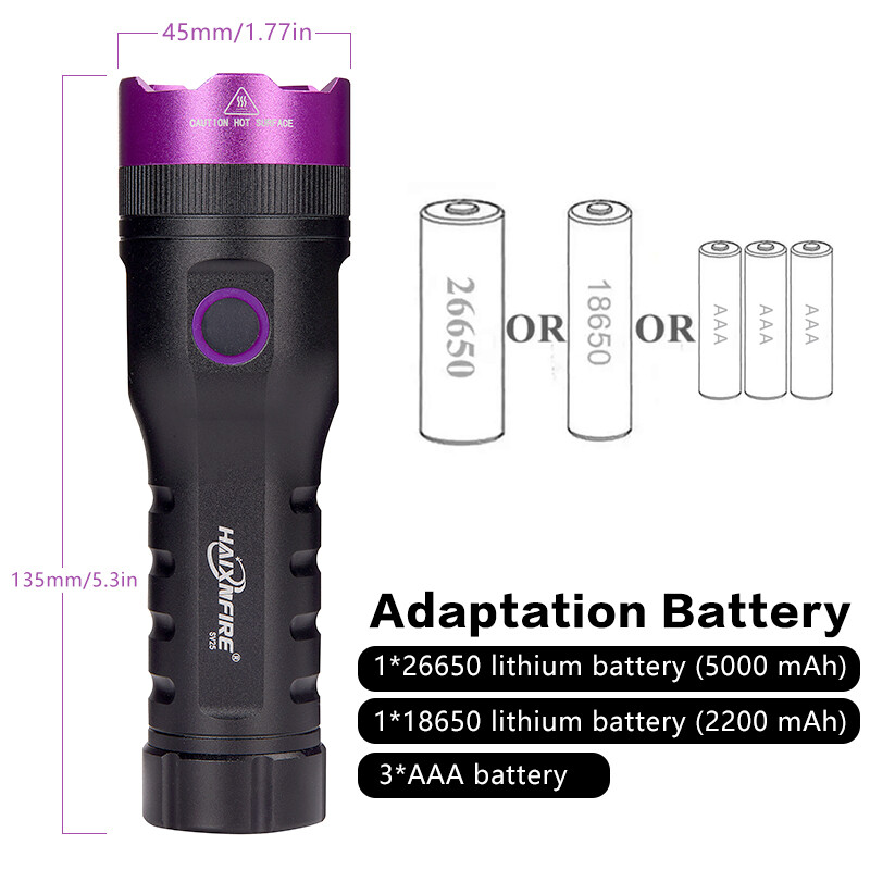 Battery: 1 x 26650 Battery of 1 x 18650 Battery rechargeable lithium battery of 3*AAA Battery
