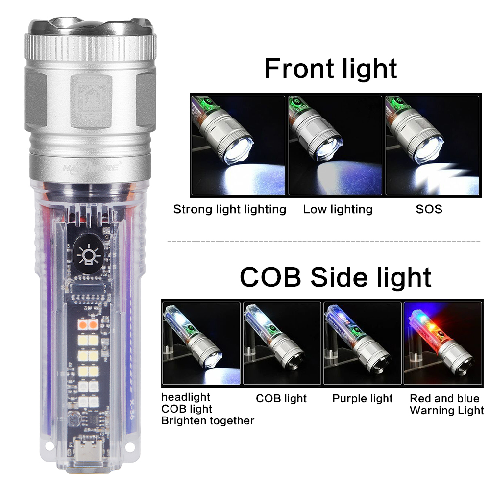 Side lights: COB light+purple light+red and blue flashing light