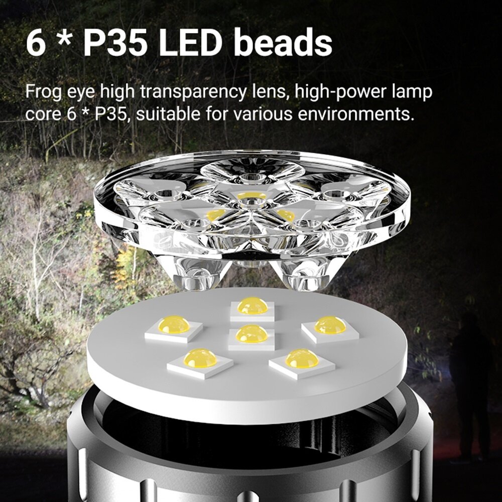 6modes: Low light - High light - Strobe - Side light Strong light (Press and hold) - Side lights Strobe - Super bright light(Double click,any gear can double click )