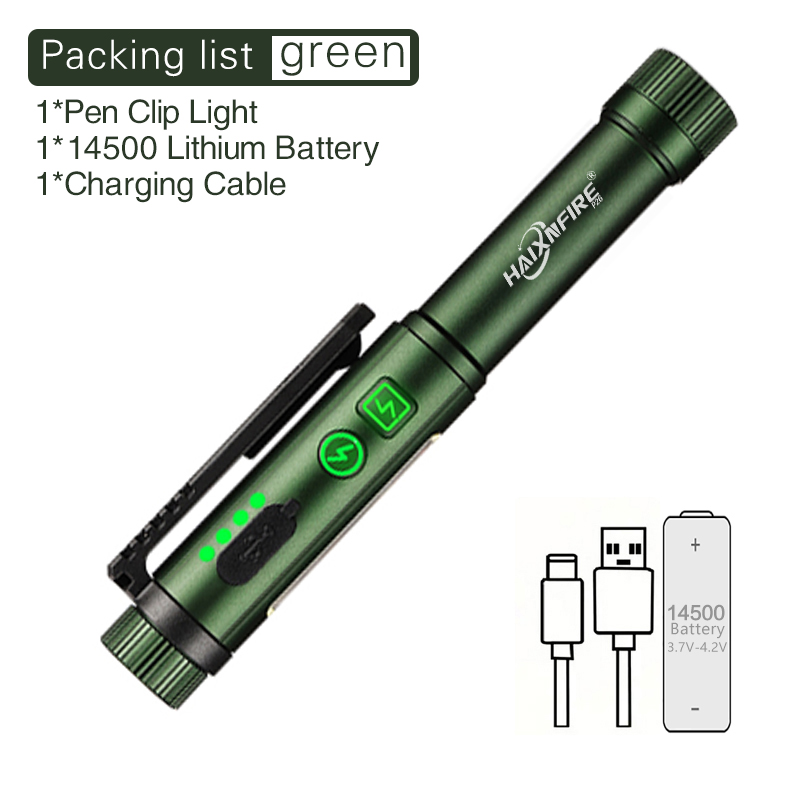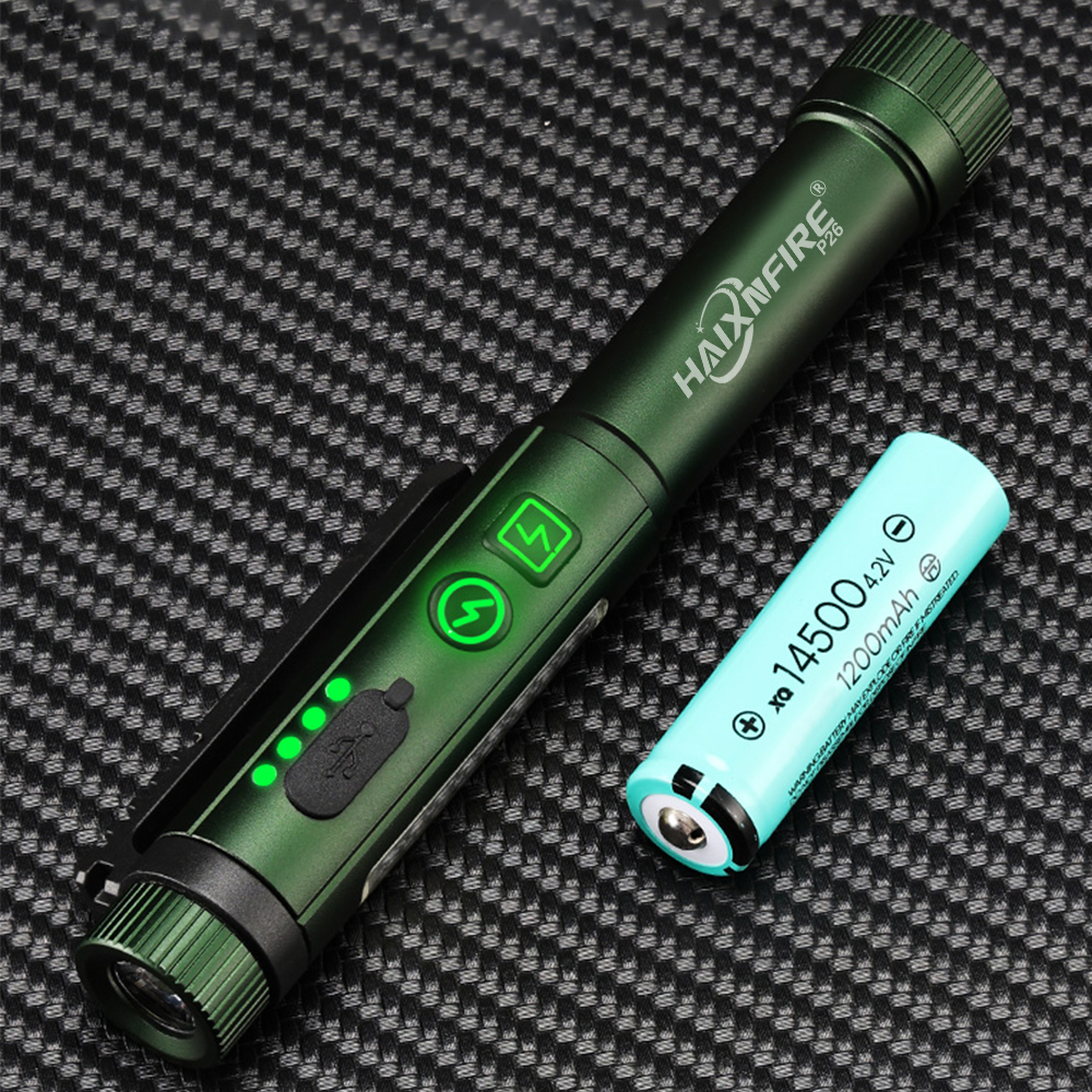 Applicable Battery: 14500 battery 3.7V (Rechargeable battery)The flashlight is compatible with 1.5V AA batteries(Charging is not allowed when using 1.5V AA battery)