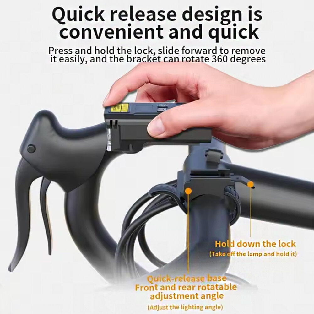 High-capacity battery: Equipped with a powerful 1800mAh battery, this bicycle headlight ensures long-term use and features a C-shaped rechargeable interface for fast charging.