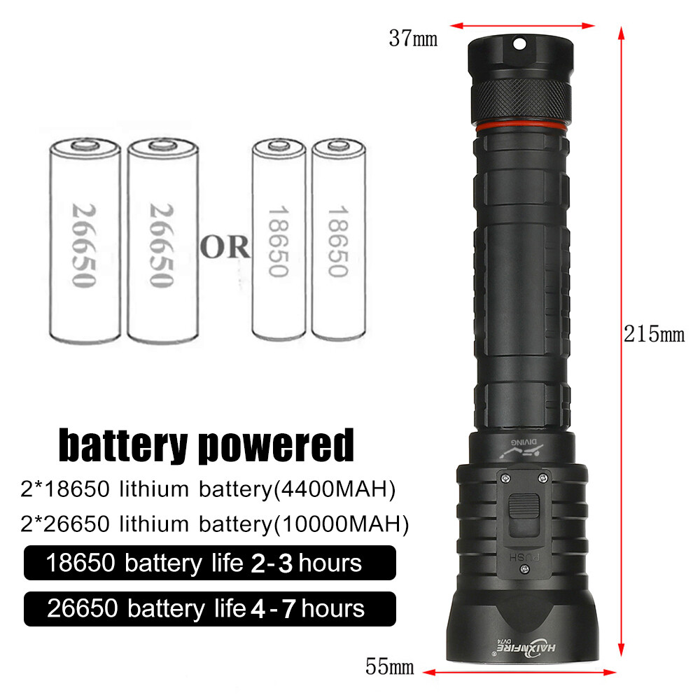 Battery life: 26650 battery life 5-8 hours, 18650 battery life 3-5 hours