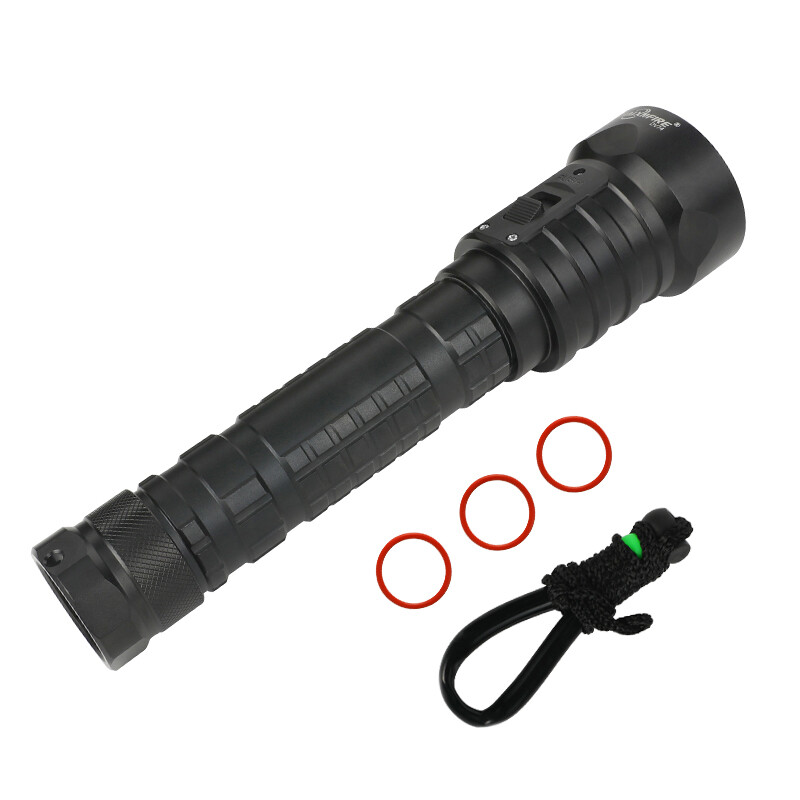The integrated cooling surface on the lamp head ensures low heat, despite the high performance adjustable light intensity for underwater operation, continuously changing the light intensity by gently moving the switch.Sealed waterproof design.