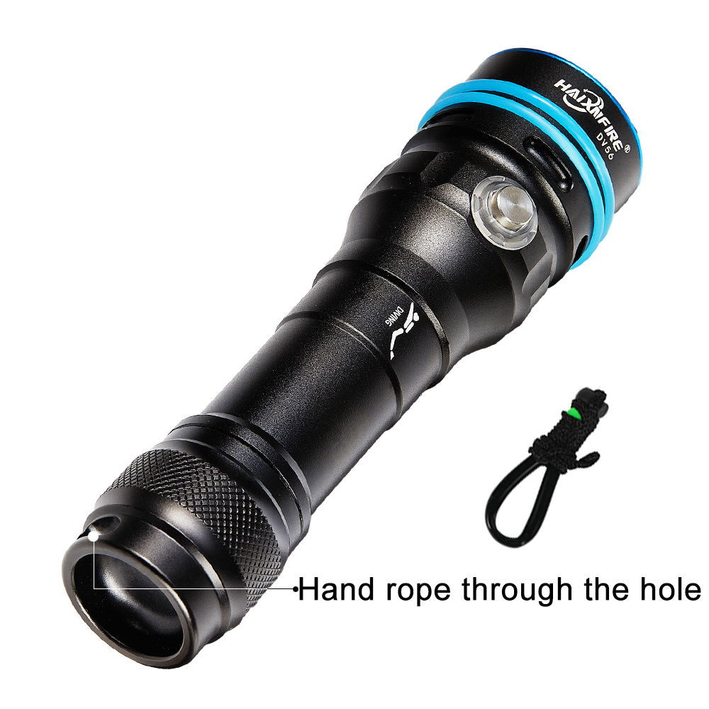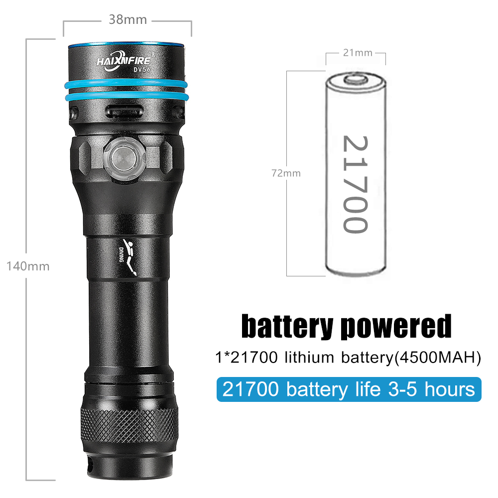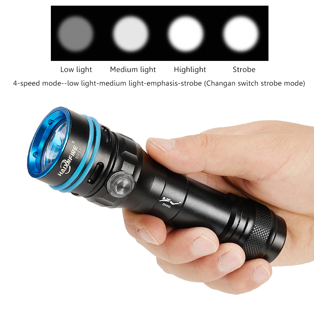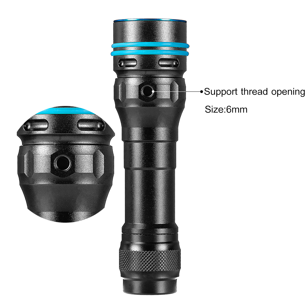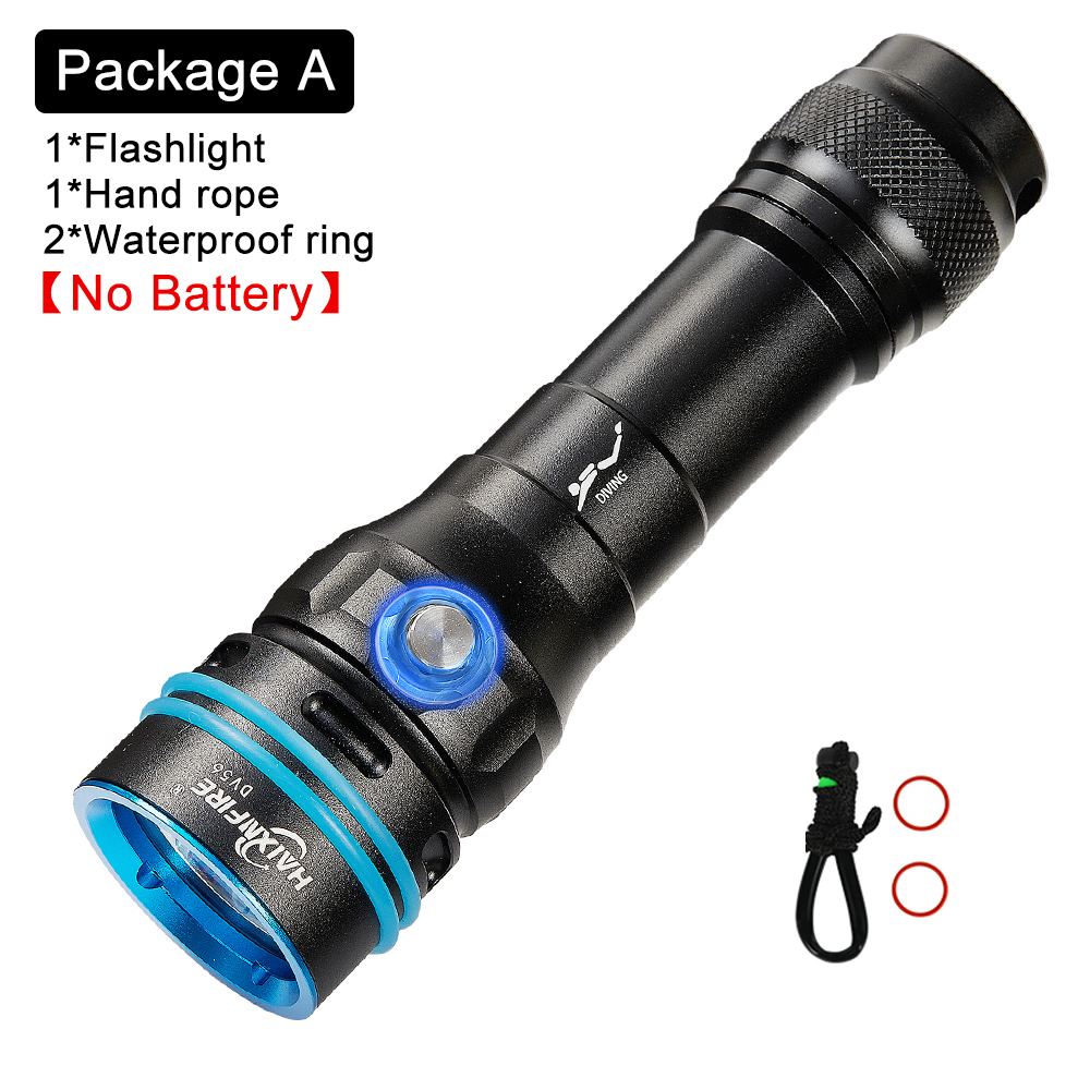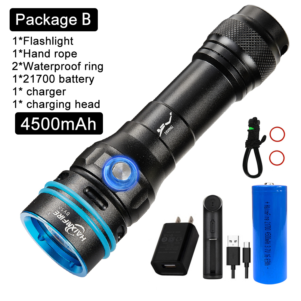 Diving flashlight description: This is a deep diving light, aviation grade aluminum alloy material, good sealing, can dive 50-100 meters deep, underwater lighting is clear, underwater to see the surrounding environment, Marine life, caves, etc., improve the safety and interest of diving.
