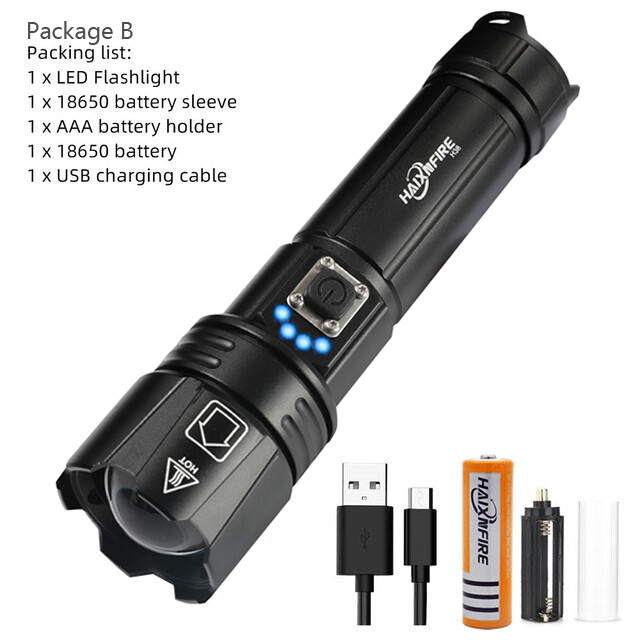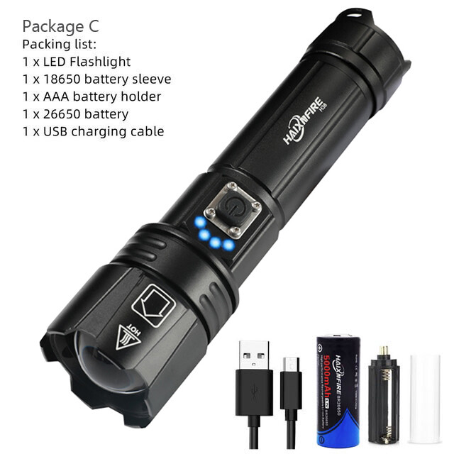 15. Battery: for 1 x 18650 battery / 1 x 26650 battery / 3 x AAA battery